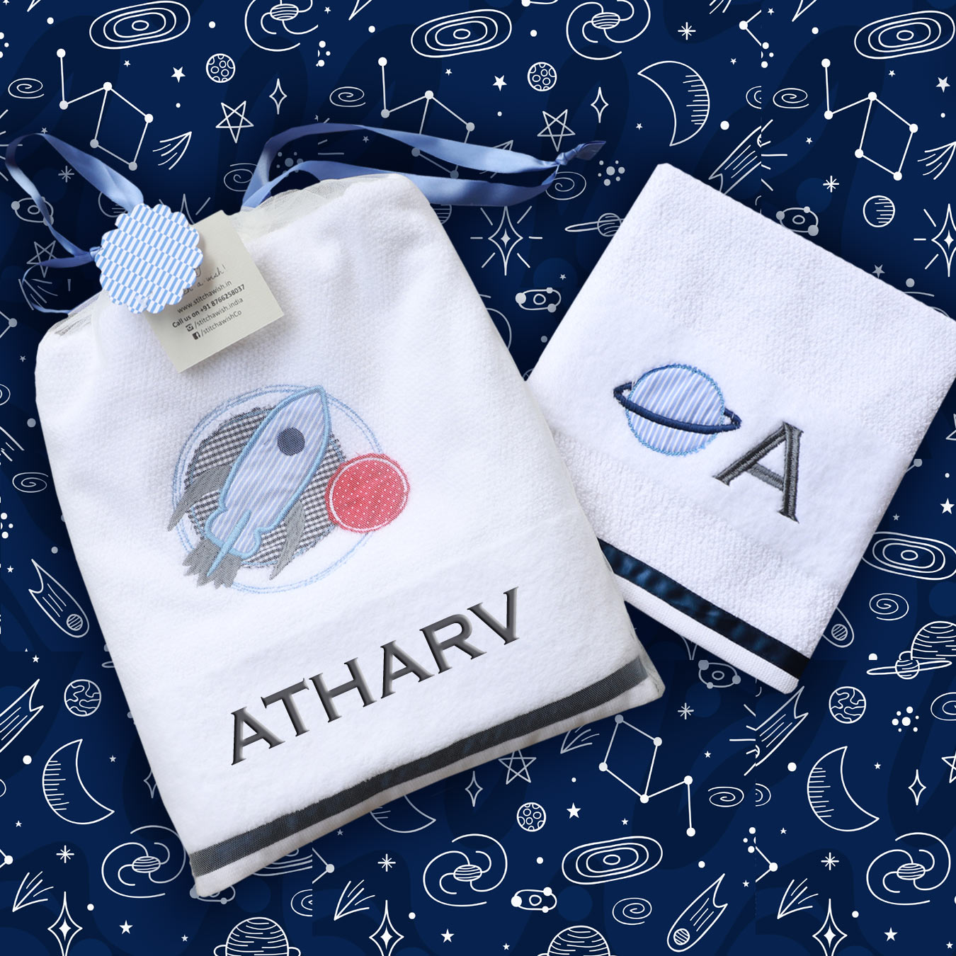 This super cute bath and hand set makes for a perfect gift set for our space enthusiast!